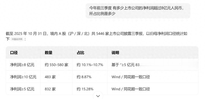 这个数据意味着什么?如果AI的数据没错,这个数据意味着趣店净利润超过了约90%的A股上市公司。