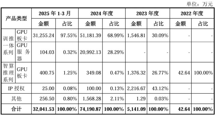 具体营收方面,主要营收来自于训推一体系列的GPU板卡,营收占比约97%。