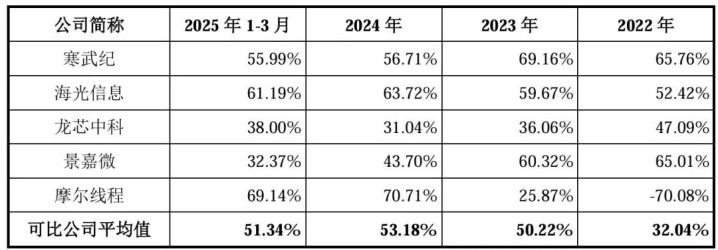 对应行业为计算机、通信和其他电子设备制造业,可比上市企业分别为摩尔线程(688795)、海光信息(688041)。